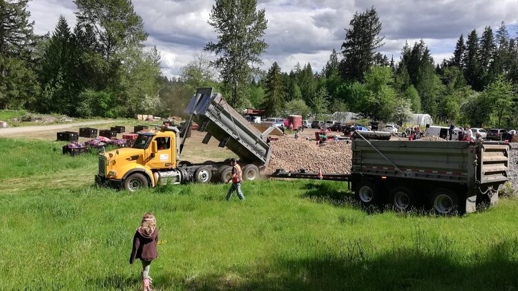 And...they're off to Othello. Did you see the dump truck and trailer from Cedar Grove? THANK YOU to all the companies who sent trucks and all the wonderful volunteers, many of whom are jobless during the Covid-19 crisis, who drove their own trucks on this food rescue mission!
