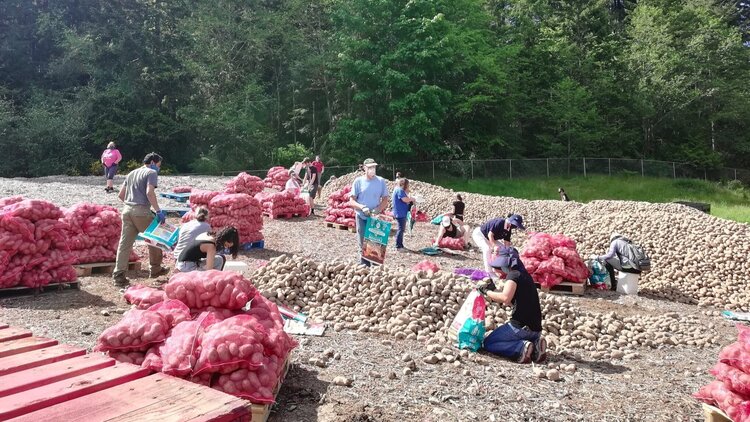We gathered at PCC Market in Redmond (thank you PCC) at 5:30am and headed out with 2 convoys of trucks and trailers to Othello to rescue over 60 TONS of surplus storage produce that would otherwise have been wasted.