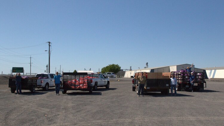 Volunteers and workers loading onions at Target Ag in Othello, WA. Thank you to the Othello Police Department for all your assistance!!